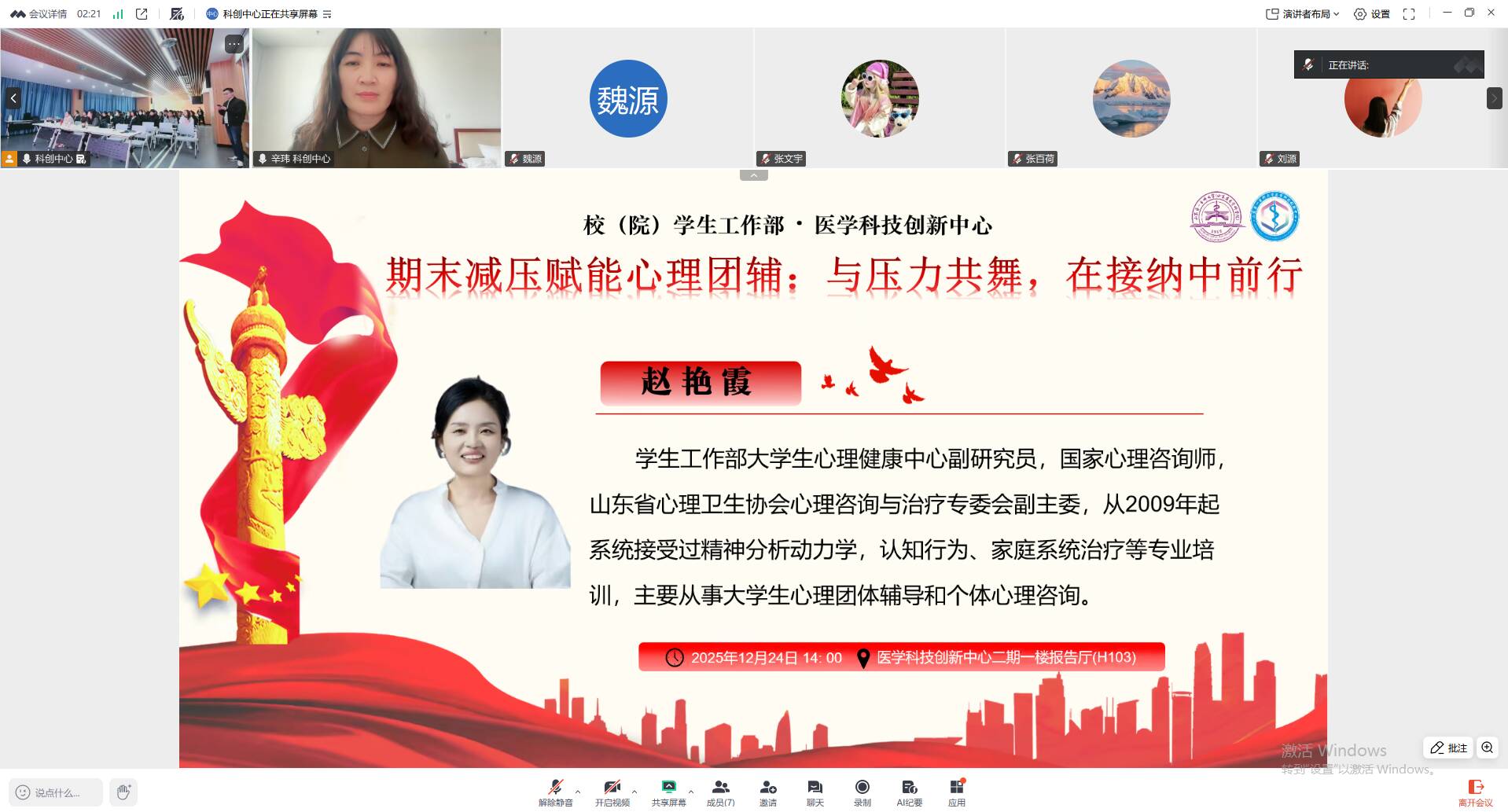 为充分发挥党建引领作用,扎实推进学生心理健康教育服务工作,12月24日,医学科技创新中心党支部联合学生工作部党支部,共同开展“与压力共舞,在接纳中前行”领航工程心理团辅活动。