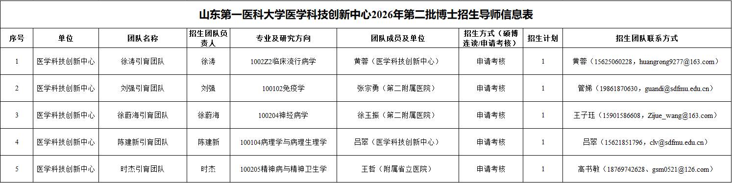 科创中心2026年第二批博士招生计划5人,专业为临床流行病学1人,免疫学1人,神经病学1人,病理学与病理生理学1人,精神病与精神卫生学1人,招生方式为申请考核制,择优选拔录取。