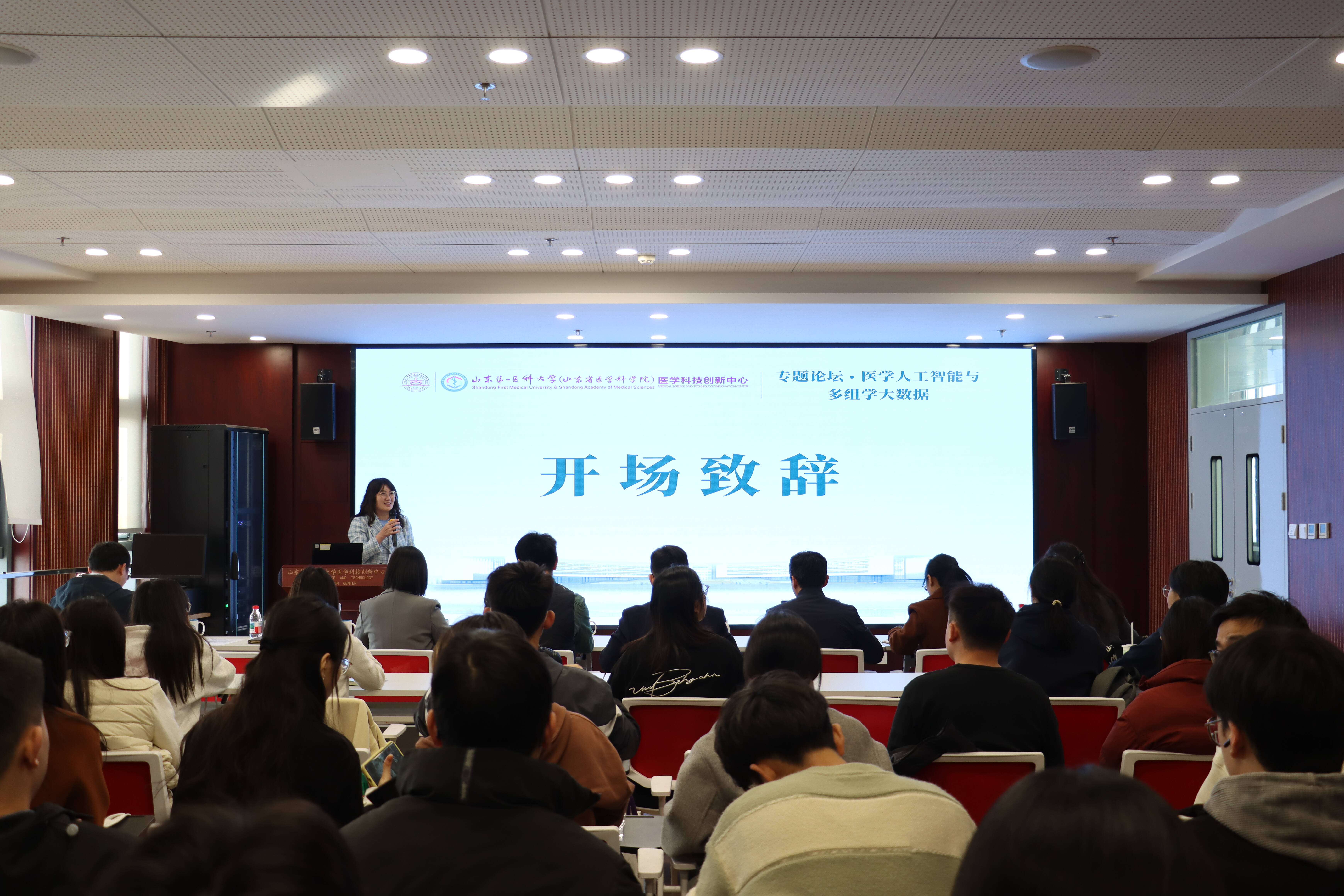 2025年11月14日,由山东第一医科大学(山东省医学科学院)医学科技创新中心(简称“科创中心”)主办的“医学人工智能与多组学大数据”专题论坛在科创中心H702报告厅举行。中国科学院计算技术研究所研究员赵屹、山东第一医科大学医学信息与人工智能学院教授徐峰、附属省立医院助理研究员王丽洁、科创中心副教授石瑞以及大型仪器平台主管沈晓彤应邀做专题报告,论坛由科创中心副主任张书平、副教授黄蓉主持。