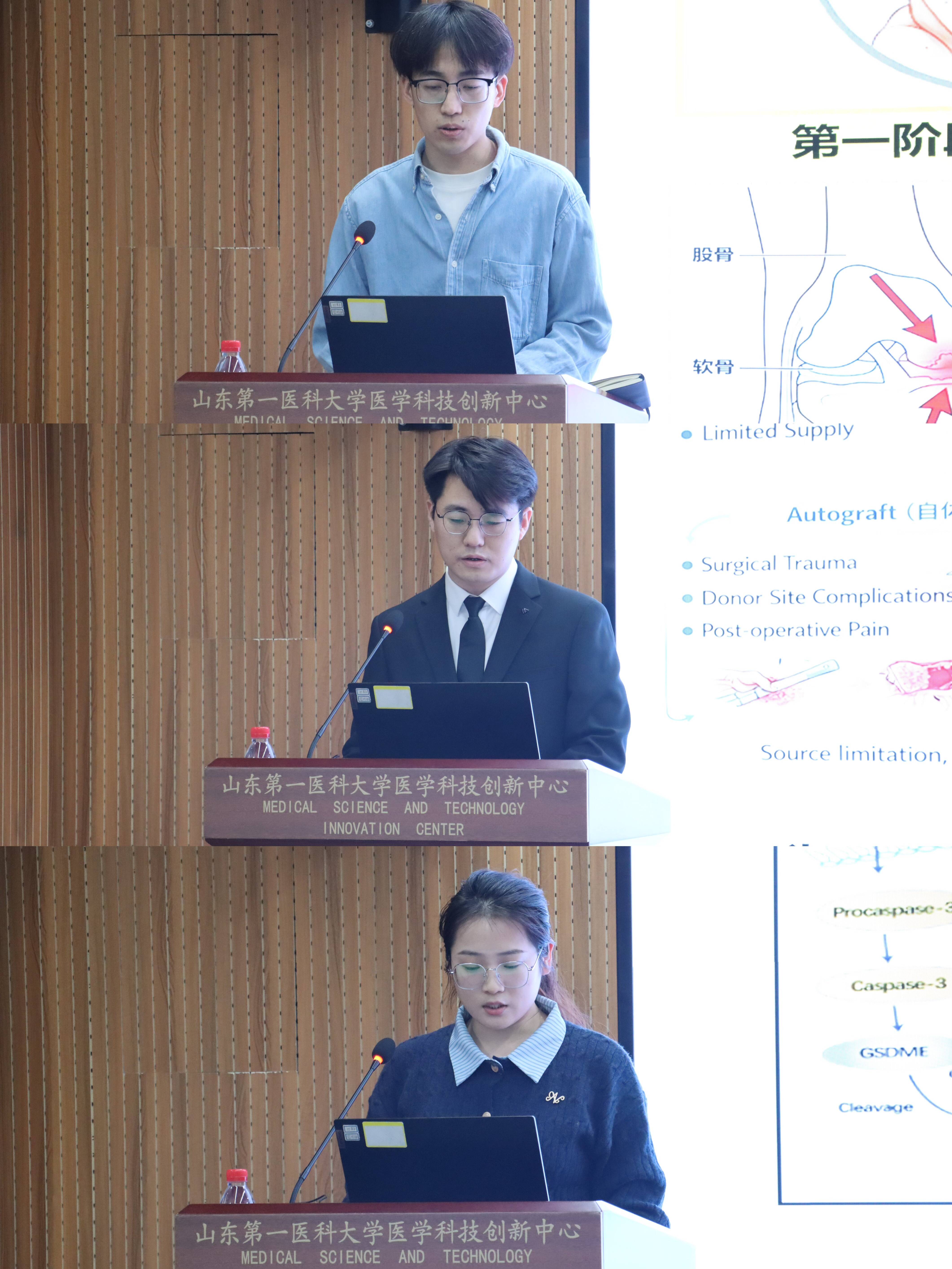 “本次研究生学术论坛中,三位汇报人聚焦前沿,分别展示了MOF纳米系统调控骨关节炎、有序MXene气凝胶修复骨缺损以及自放大焦亡诱导剂增强肿瘤免疫等创新成果。报告内容从新型生物材料构建到疾病机制解析,展现了多学科交叉融合的深度与广度,为相关领域的学术研究注入了崭新活力。论坛的举办也为研究生们搭建了展示成果、交流思想的平台,通过研讨促进启发协作,为后续科研注入强劲动力。”